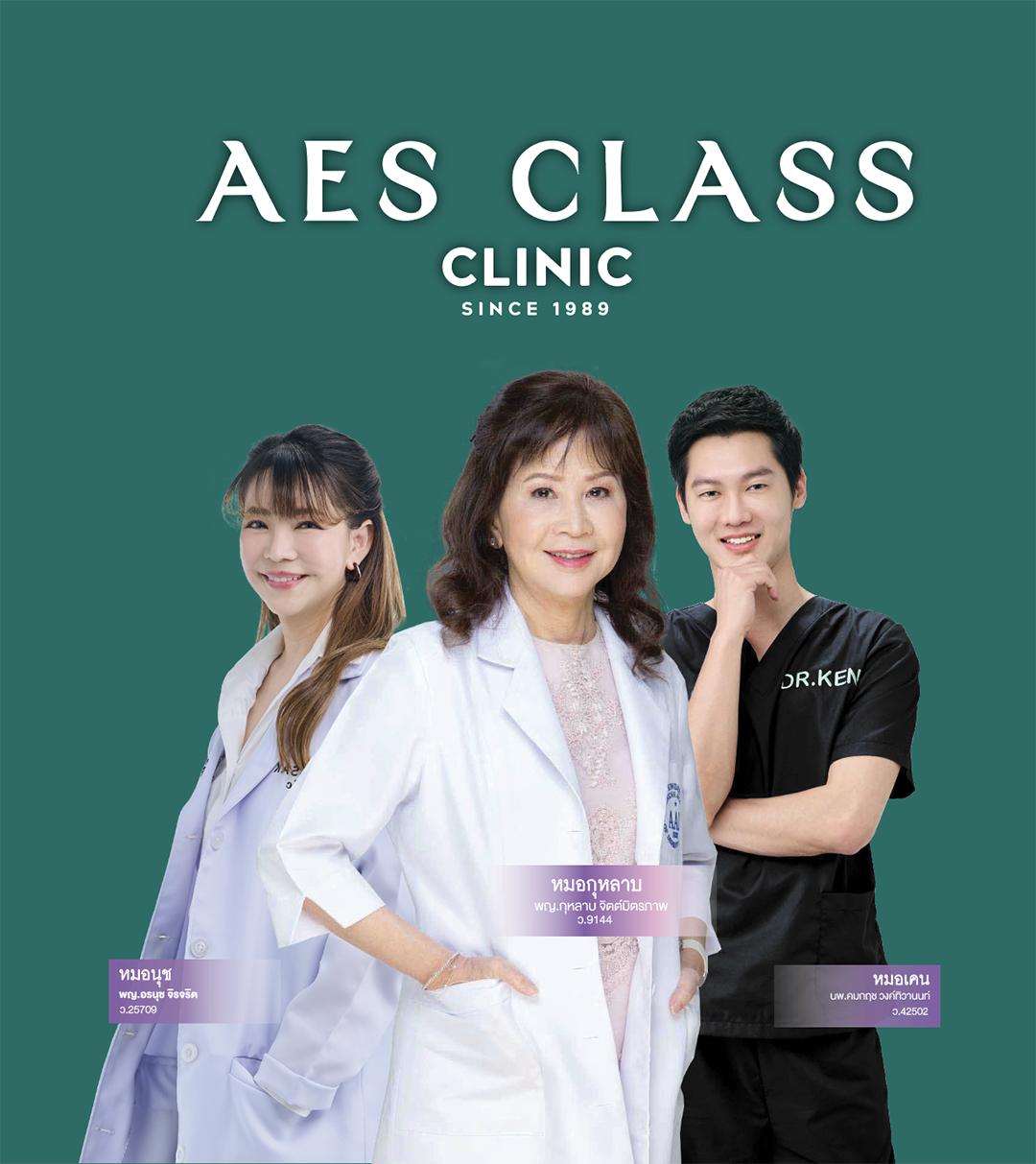เมื่อจับมือกันเป็น ‘AES CLASS CLINIC’ จากการเปิดให้บริการมานานกว่า 36 ปี ทำให้แพทย์ของคลินิกเต็มเปี่ยมไปด้วยประสบการณ์ในการรักษา และมีการส่งต่อถ่ายทอดองค์ความรู้รวมถึงเทคนิคต่าง ๆ ให้กับแพทย์จากรุ่นสู่รุ่น